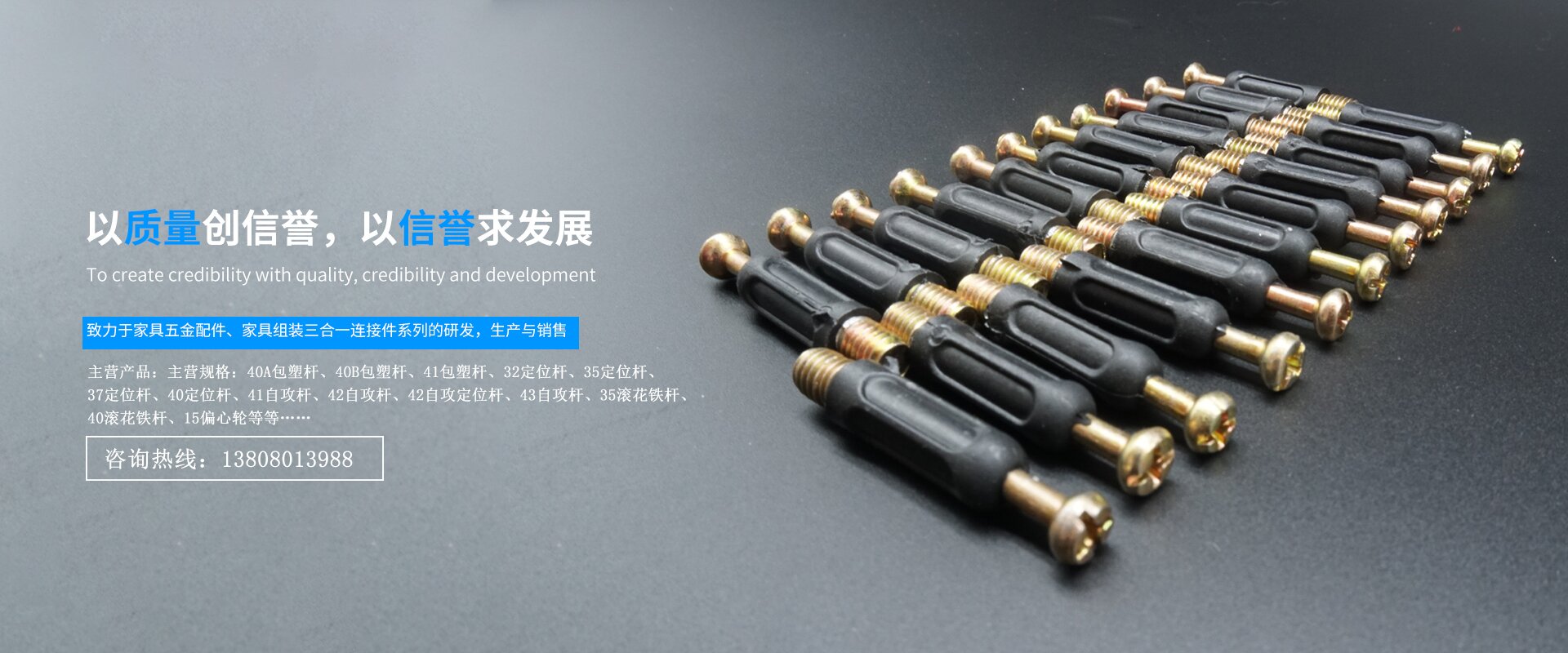 成都市聯盛五金制品有限公司成立于2012年,現擁有廠房面積16000平方米,主要從事家具五金配件、家具組裝三合一連接件系列的研發,生產與銷售。公司目前主營產品:家具組裝三合一包塑桿、定位桿、鐵桿、滾花鐵桿、雙頭桿、木牙螺絲、板托中軸、隔板釘等。